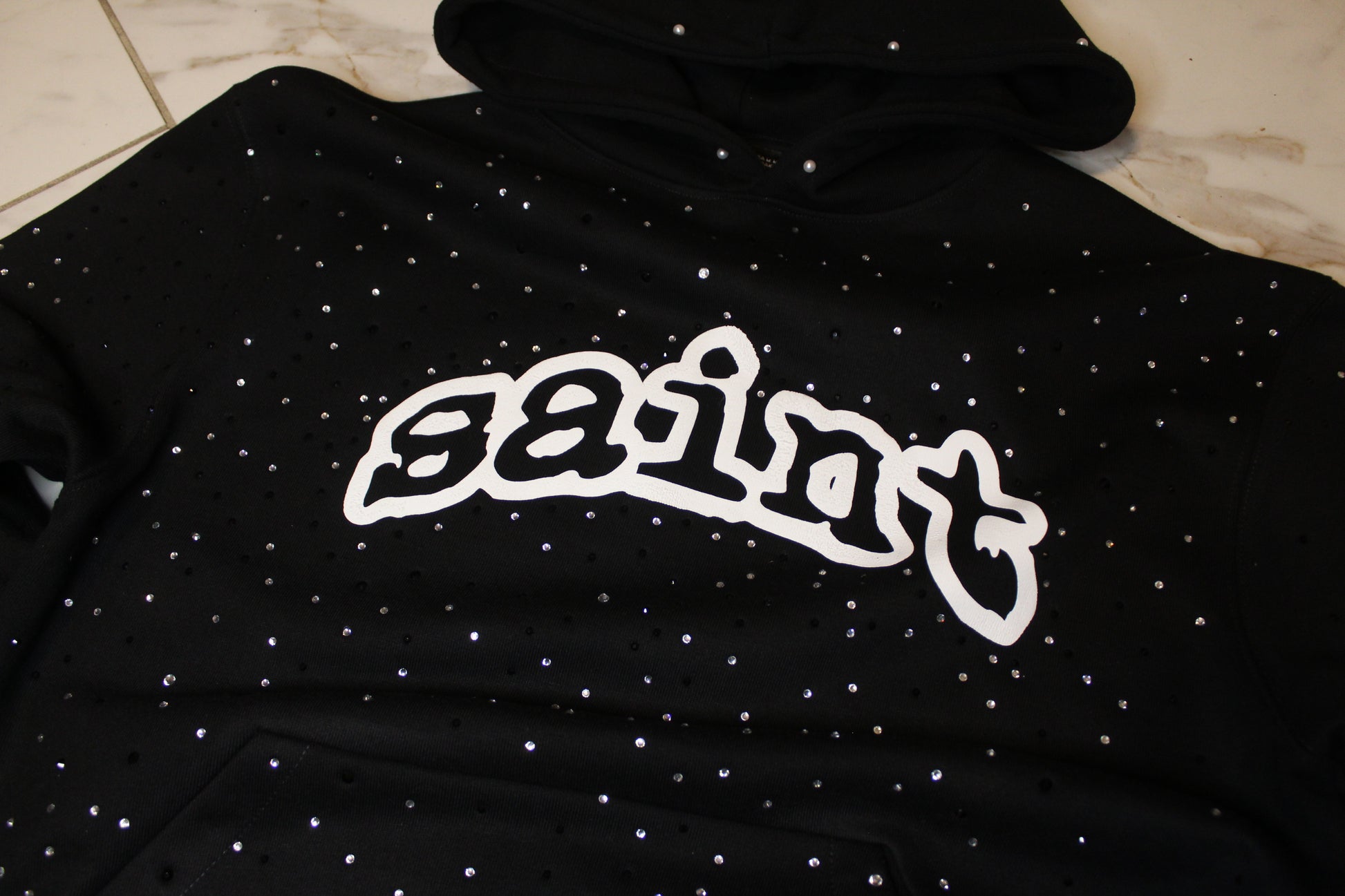 “saint” rhinestone pullover
